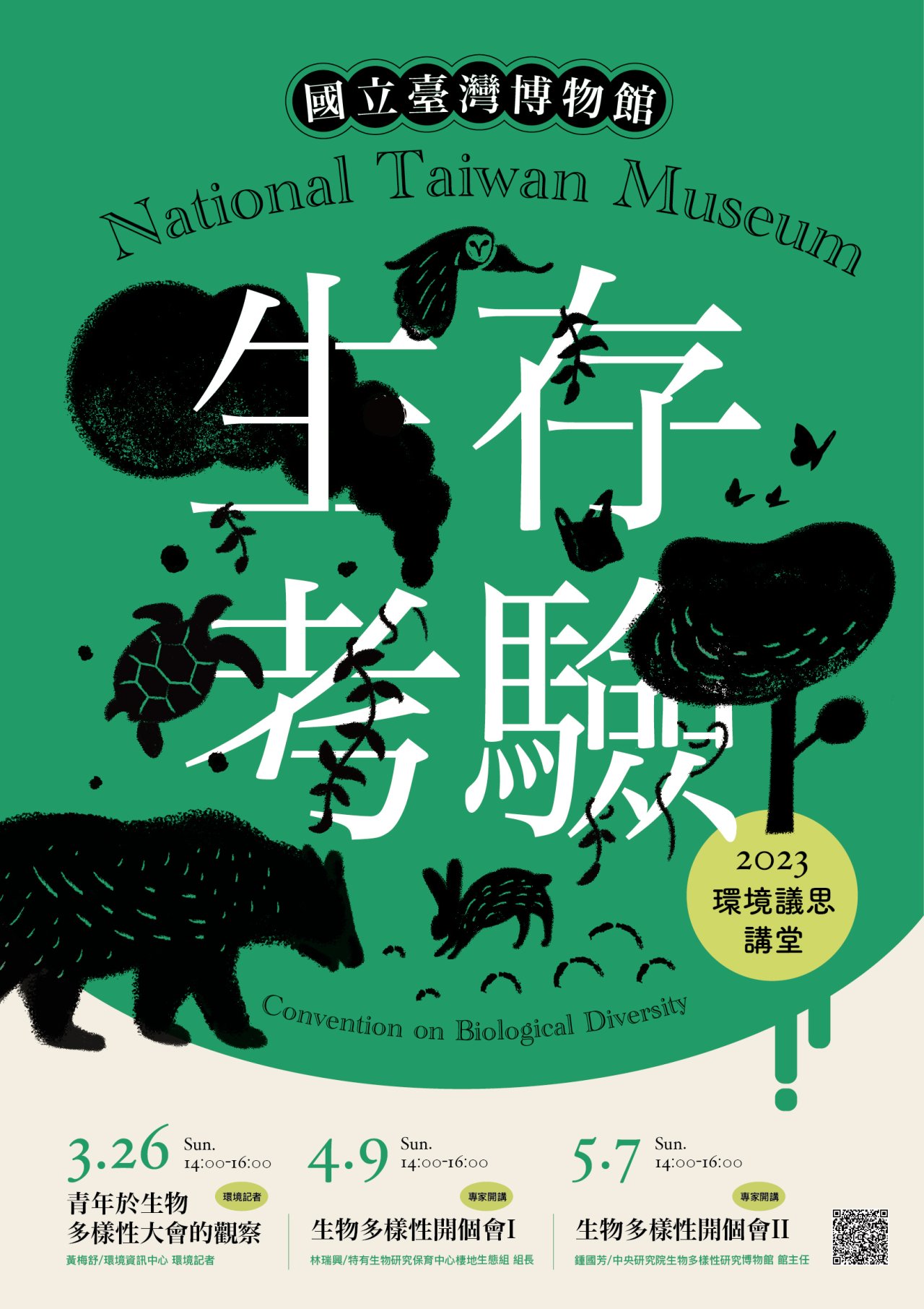 3、活動說明:以「生存考驗」為題,借重曾參與聯合國 生物多樣性大會的專家學者開講,和大眾分享交流相關經驗及臺灣應如何因應的看法。